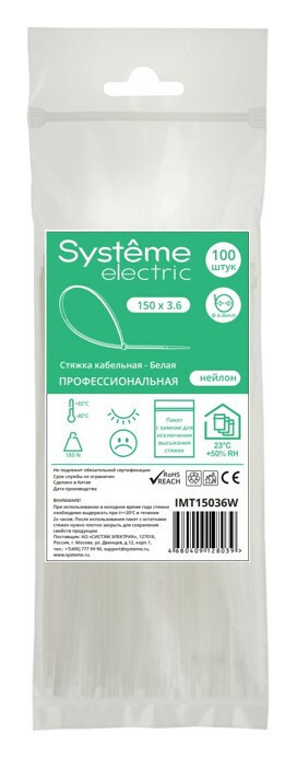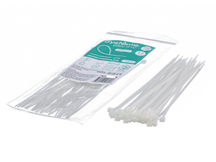 Стяжка кабельная нейлоновая 150х3.6 Белая (100шт) в пакете с замком ЗИП-ЛОК