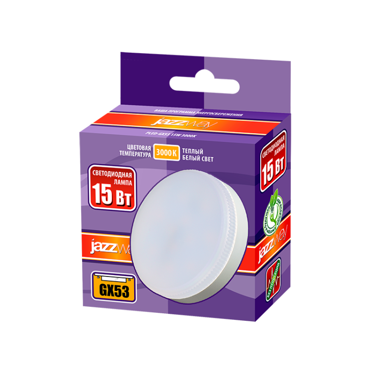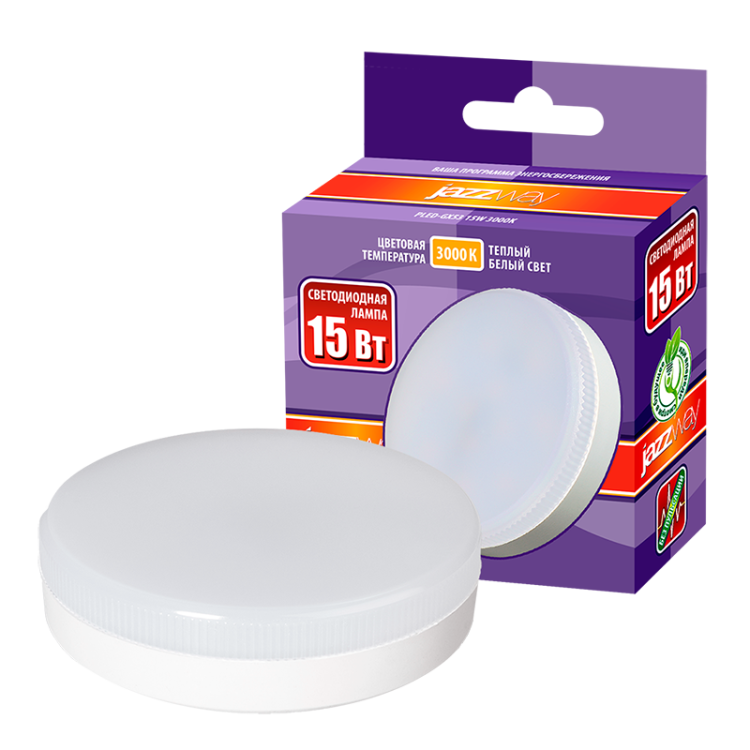 Лампа светодиодная 15 Вт GX53 3000К таблетка, тёплый белый