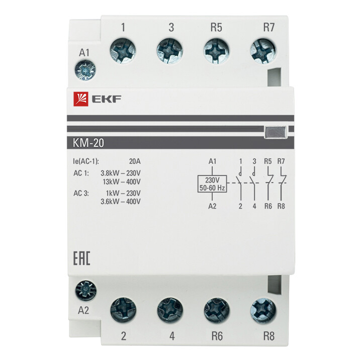 Контактор модульный КМ 20А 2NО+2NC (3 мод.) EKF