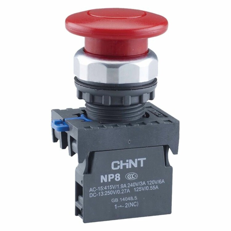 Кнопочный выкл. в сборе гриб., 1 упр. элемент красный круг. линза, 1НЗ IP65 без фиксации, CHINT
