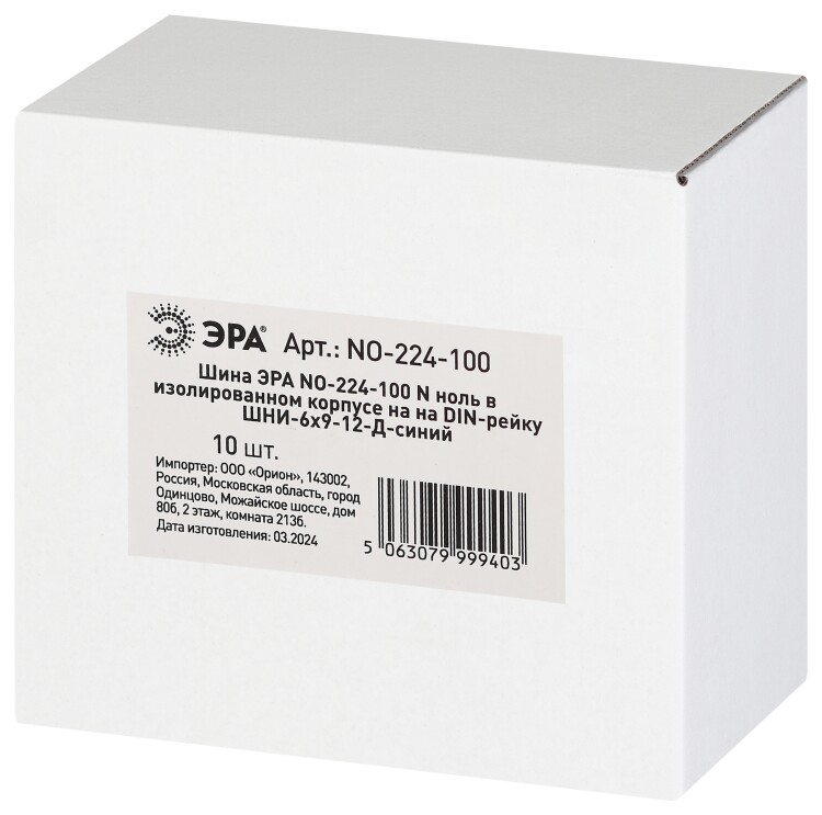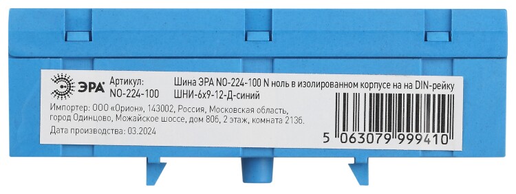 Шина ЭРА NO-224-100 N ноль в изолированном корпусе на DIN-рейку ШНИ-6х9-12-Д синий