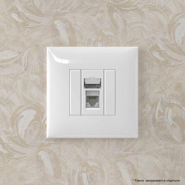 Компьютерная розетка RJ-45 в стену, кат.6A одинарная, "Avanti", "Белое облако"