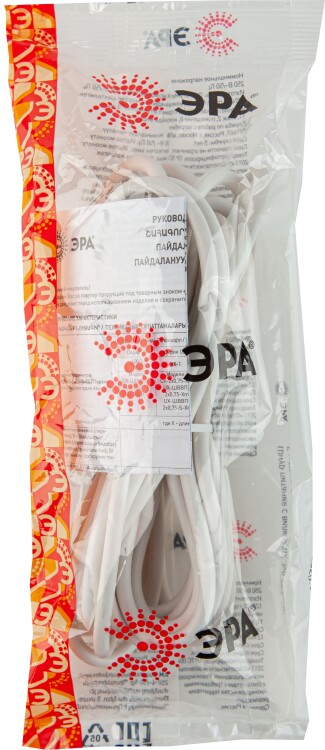 Шнур сетевой с вилкой ЭРА UX-3x0,75-5m-W с заземлением 5м ПВС 3x0,75мм2 белый