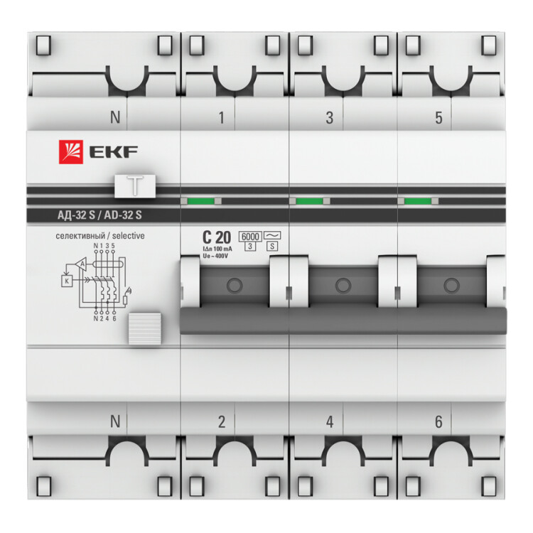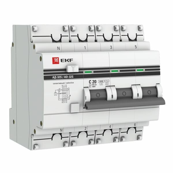 Дифференциальный автомат АД-32 (селективный) 3P+N 20А/100мА EKF PROxima