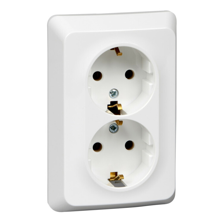 ЭТЮД С/У двойная РОЗЕТКА с заземлением без шторок 16А 250B, БЕЛЫЙ, Россия