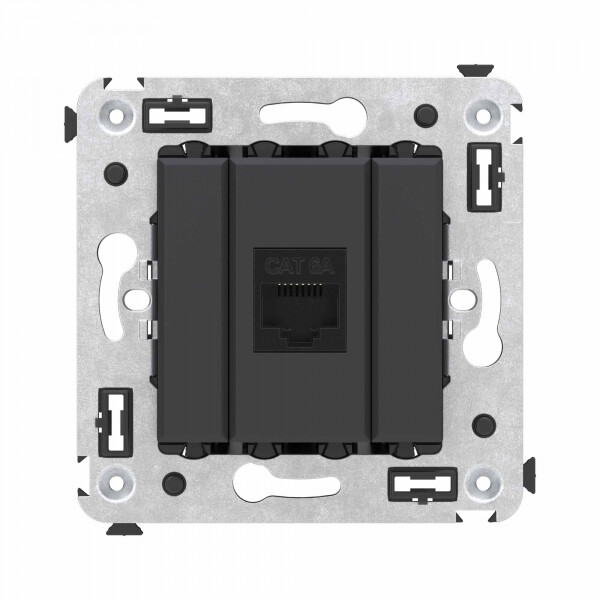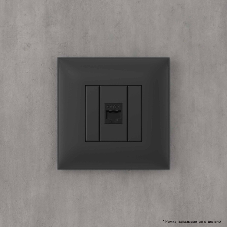 Компьютерная розетка RJ-45 без шторки в стену, кат.6А одинарная, "Avanti", "Черный матовый"