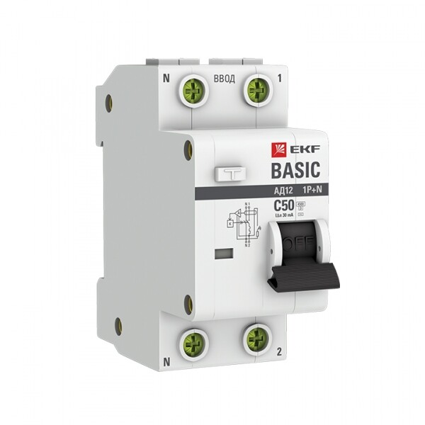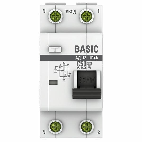 Автоматический выключатель дифференциального тока 1P+N 50А 30мА тип АС х-ка C эл. 4,5кА АД-12 Basic