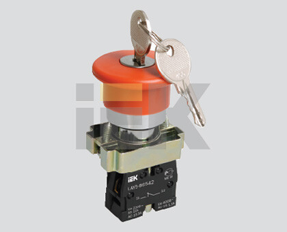 Кнопка управления "Грибок"с ключем красная 230В d22мм 1з+1р IP40 тип LAY5-BS142