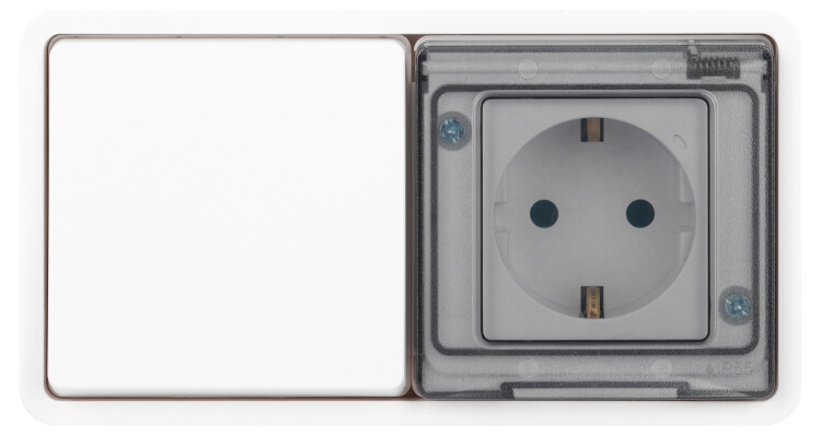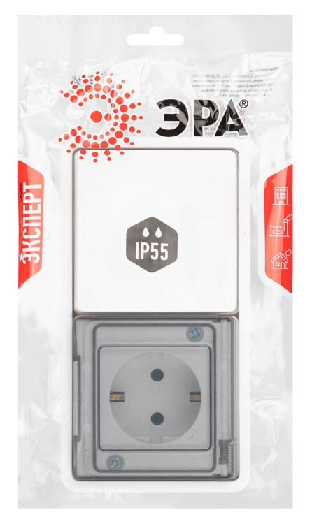 Блок розетка с выключателем ЭРА Эксперт 11-7521-01 IP55, 16A(10AX)-250В, СУ, белый