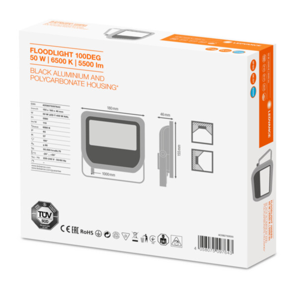 Прожектор LED 50Вт 5500Лм 6500К IP65 черный FLOOD LED