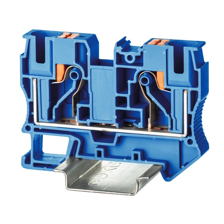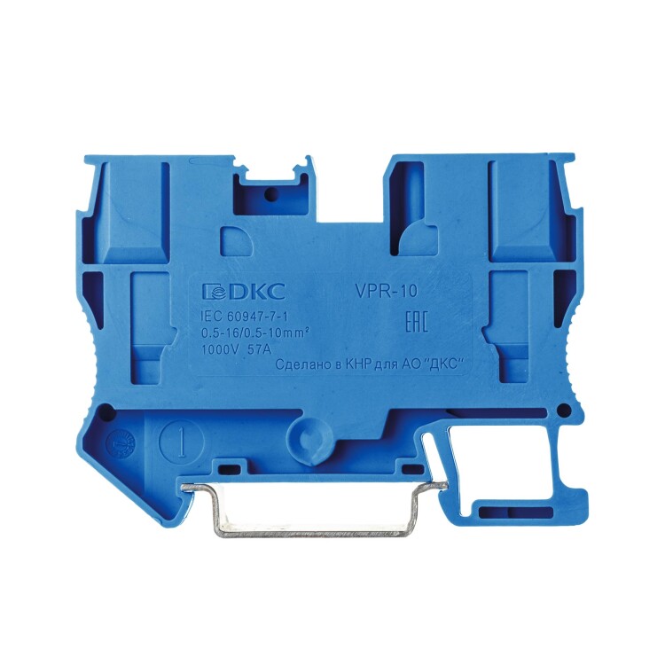 Клемма проходная, зажим push-in, 2 точки подключения, 10 кв.мм, синяя