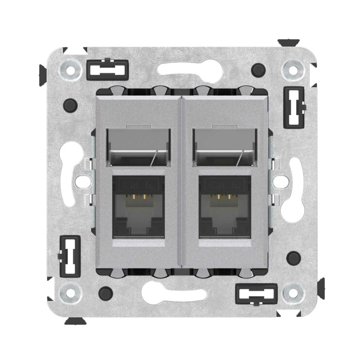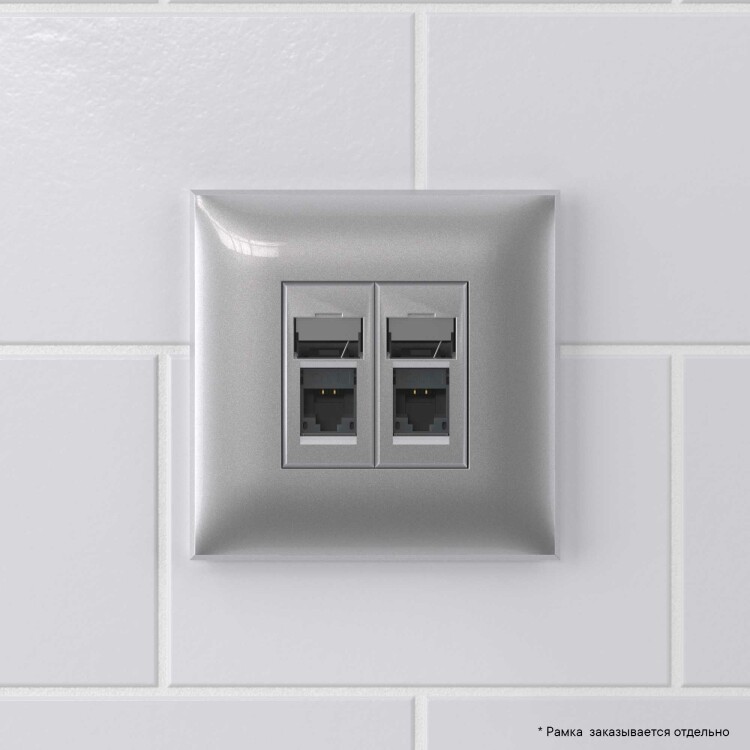 Компьютерная розетка RJ-45 в стену, кат.6А двойная, "Avanti", "Закаленная сталь"