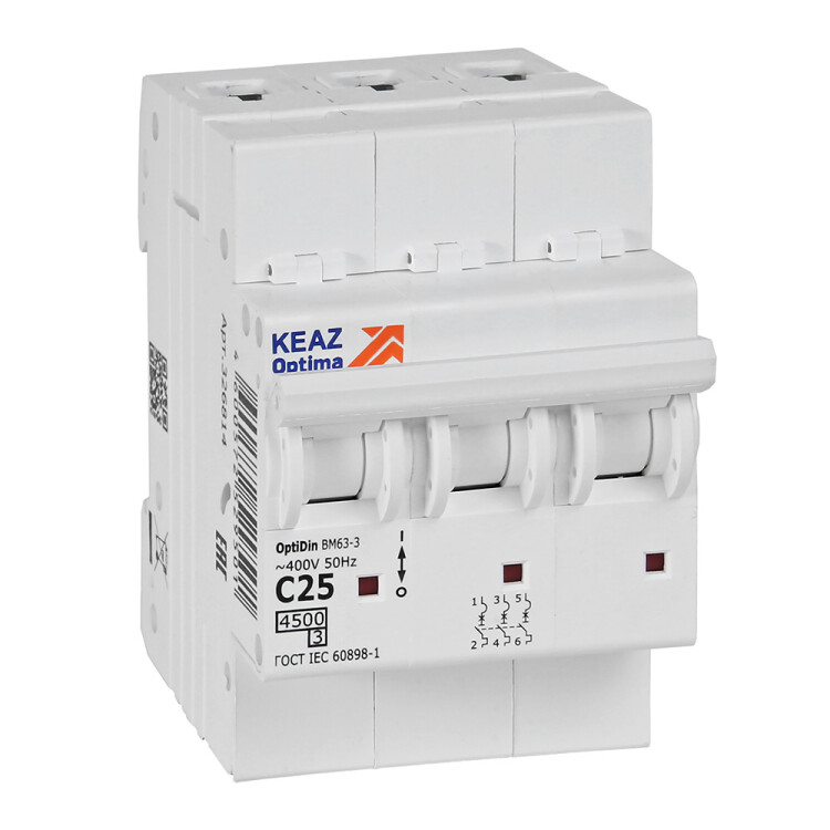 Выключатель автоматический модульный OptiDin BM63-3C25-4,5-УХЛ3