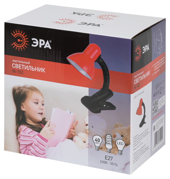 Светильник настольный для лампы N-102-E27-40W-R 40Вт Е27 IP20 прищепка красный