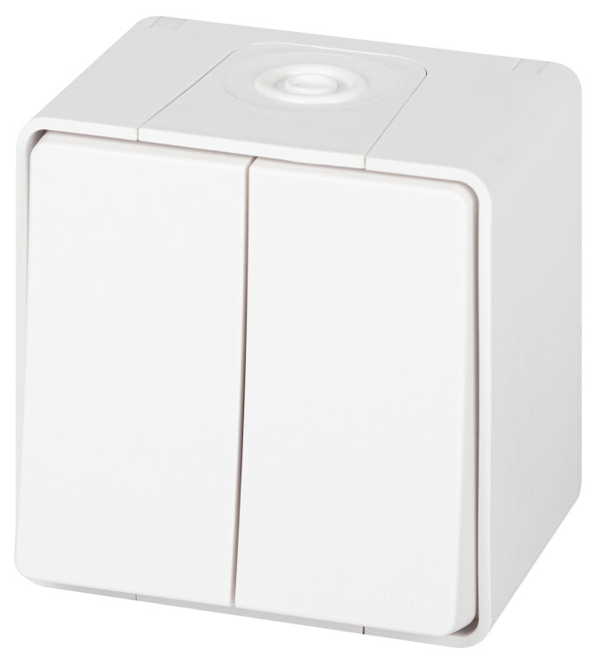 Выключатель ЭРА Эксперт 11-1504-01 двойной IP55, 10АХ-250В, ОУ, белый