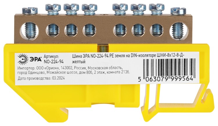 Шина ЭРА NO-224-94 PE земля на DIN-изоляторе ШНИ-8х12-8-Д-желтый