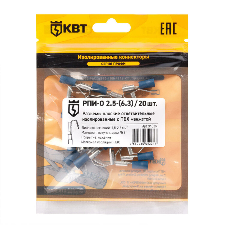 Разъем плоский ответвительный изолированный РПИ-О 2.5-(6.3) (20 шт) (КВТ)