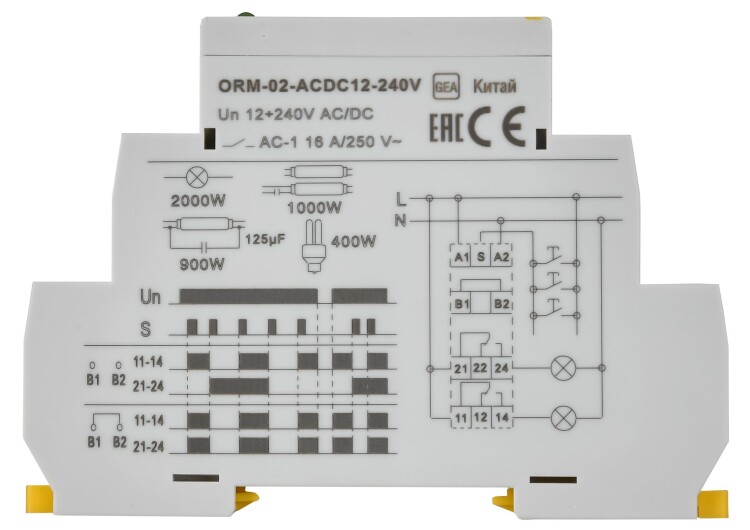 Реле импульсное 16А 2 конт. 12-240В AC/DC тип ORM-02-ACDC12-240V