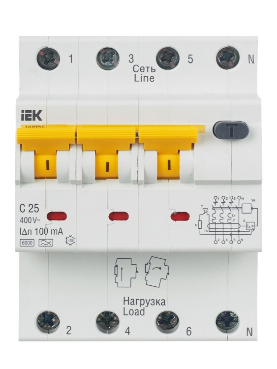 Автомат. выкл. дифф. тока 4-пол. 25А 100мА тип A 6кА хар-ка C серия АВДТ 34 C25 100мА - Автоматический Выключатель Дифф. тока