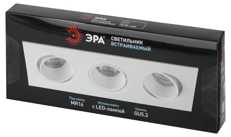 Встраиваемый светильник декоративный ЭРА KL90-3 WH MR16/GU5.3 белый, пластиковый