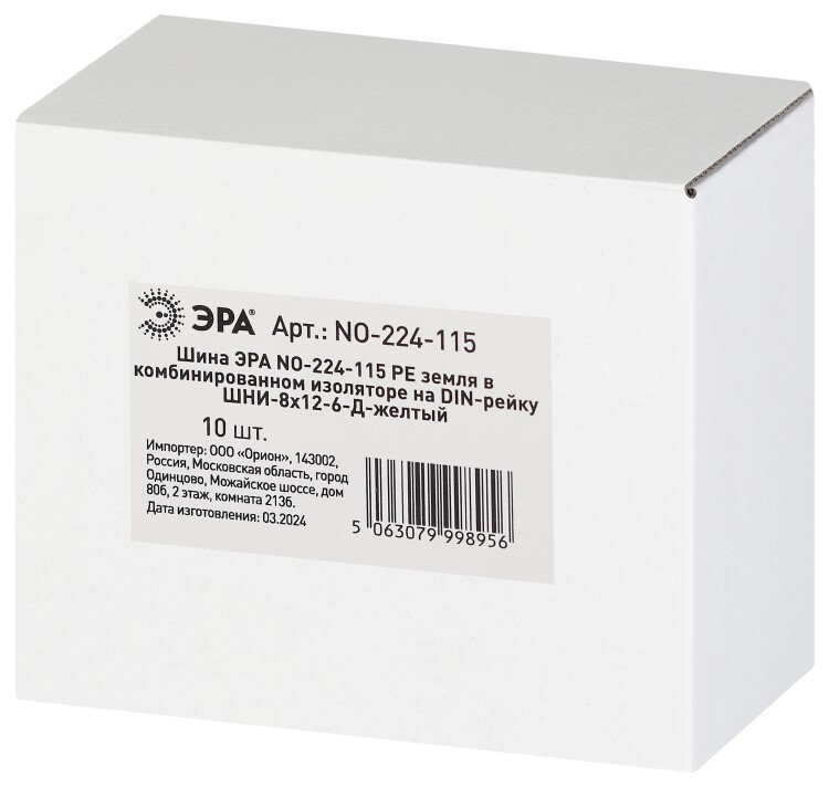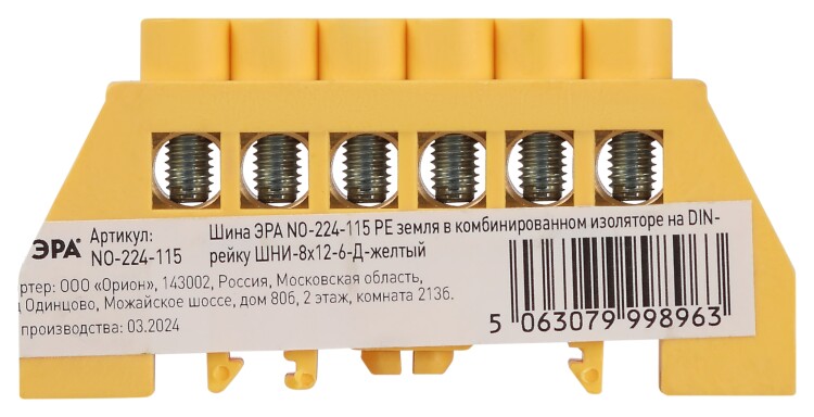 Шина ЭРА NO-224-115 PE земля в комбинированном изоляторе на DIN-рейку ШНИ-8х12-6-Д-желтый