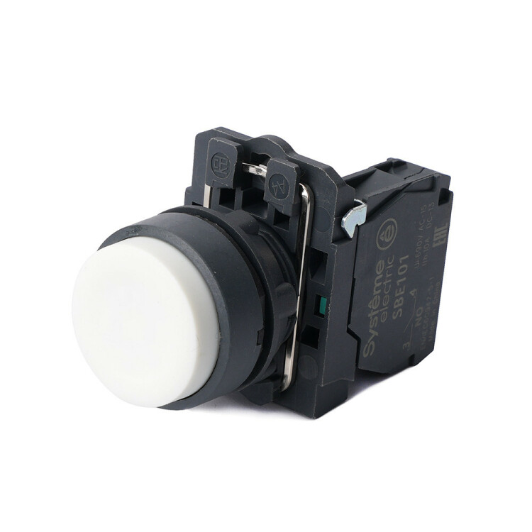 Кнопка SB5 в сборе модульная 22мм выступающая белая с возвратом пластик 1НО