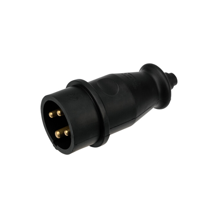 Вилка влагозащищенная переносная 3Р+РЕ, 32А, IP44 каучук, черная REXANT