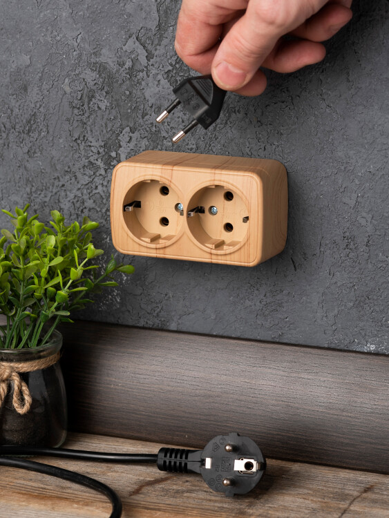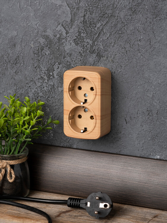 Розетка 2-местная ОП Минск 16А с заземлением светлое дерево EKF