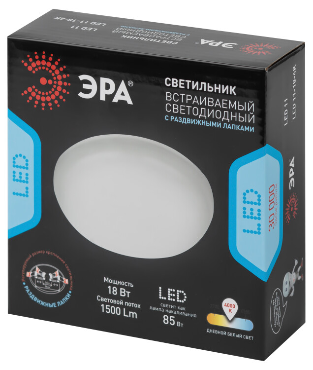 Светильник светодиодный встраиваемый ЭРА LED 11-18-4K круглый регулируемый 18Вт 4000K
