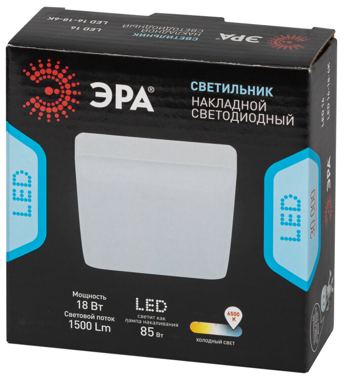 Светильник светодиодный ЭРА LED 16-18-6K накладной квадратный 18Вт 6500К