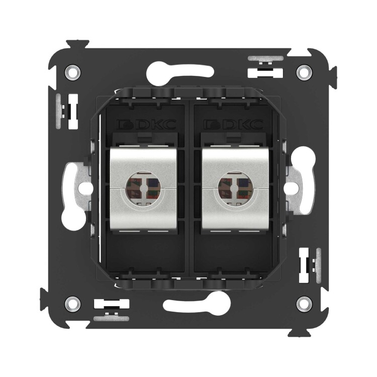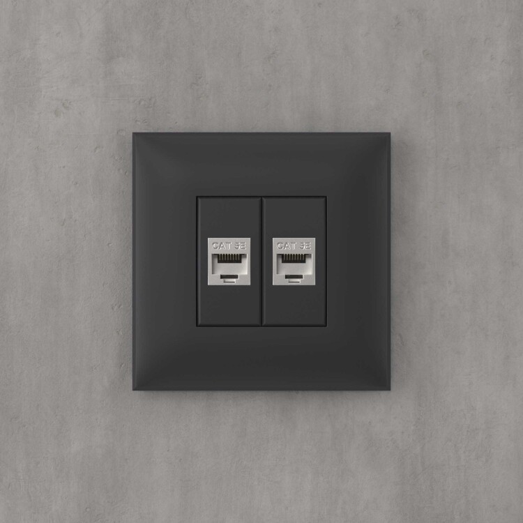 Компьютерная розетка RJ-45 без шторки в стену, кат.5e двойная экранированная, "Avanti", "Черный матовый"