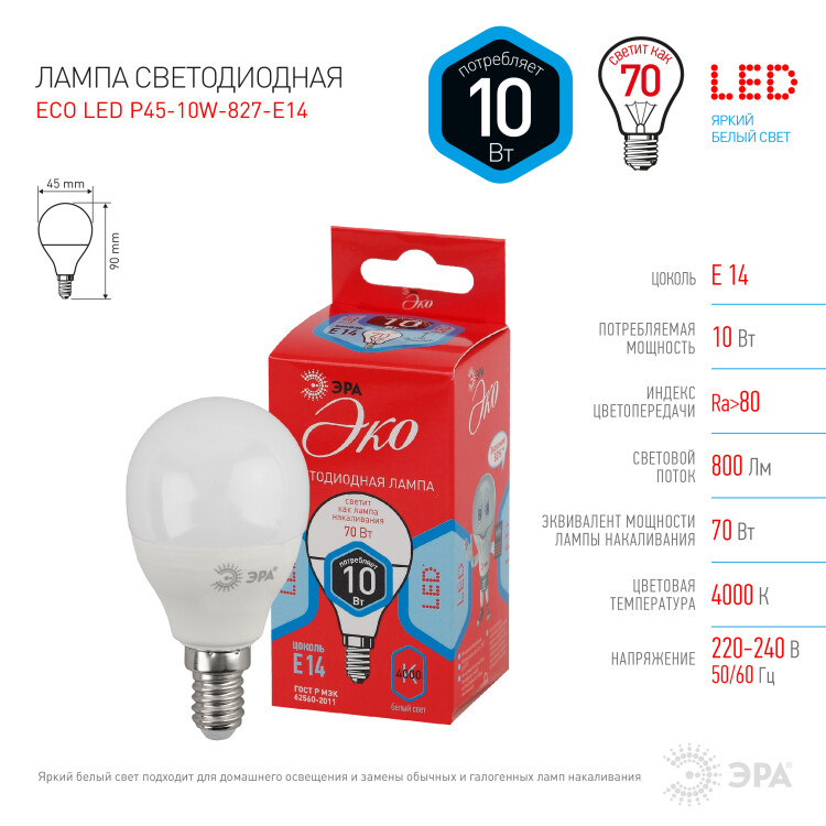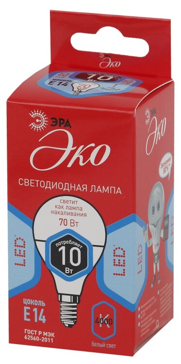 Лампочка светодиодная ЭРА RED LINE ECO LED P45-10W-840-E14 Е14 / E14 10Вт шар нейтральный белый свет