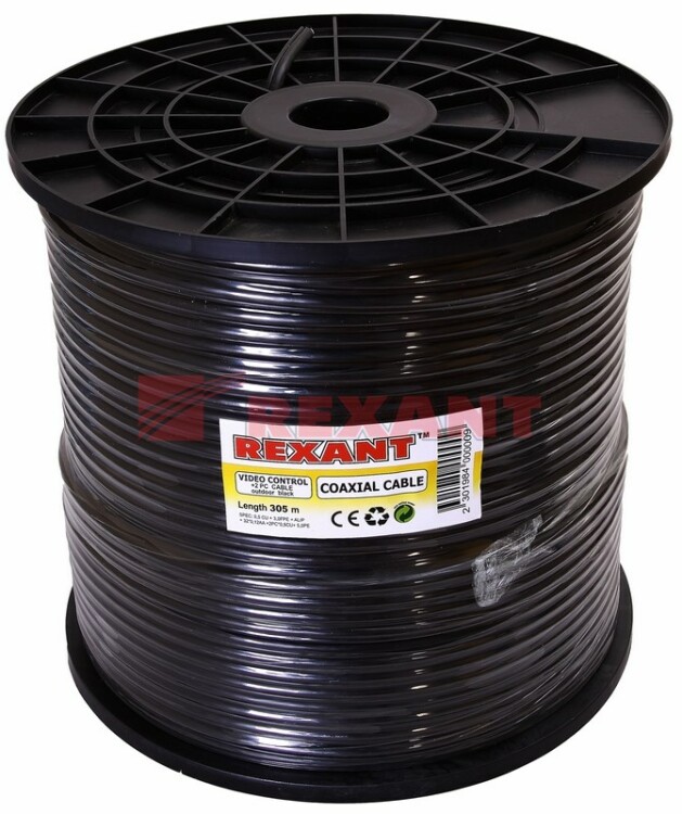 Кабель ККСВ-П+2x0,5 мм, 305 м, черный, REXANT