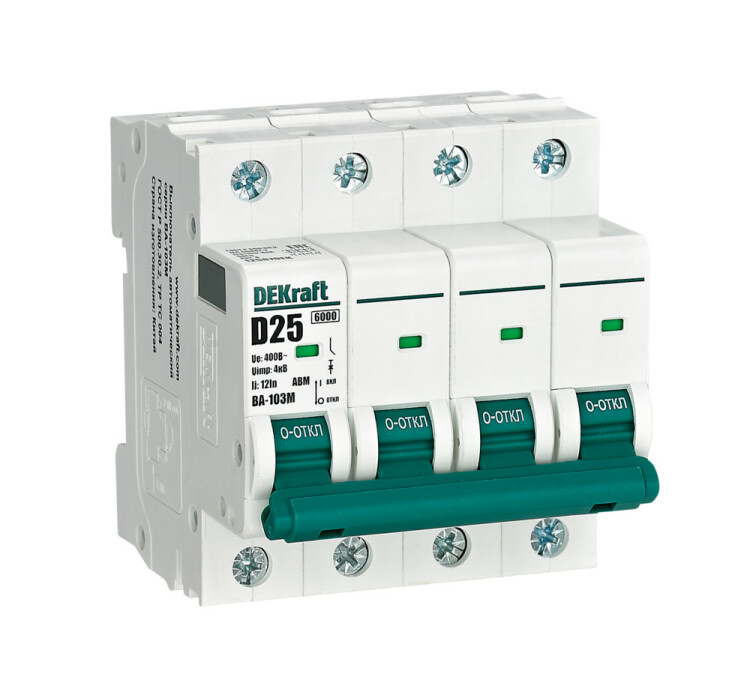 Авт. выкл. без теплозащиты 4P 25А х-ка D 6кА ВА-103M