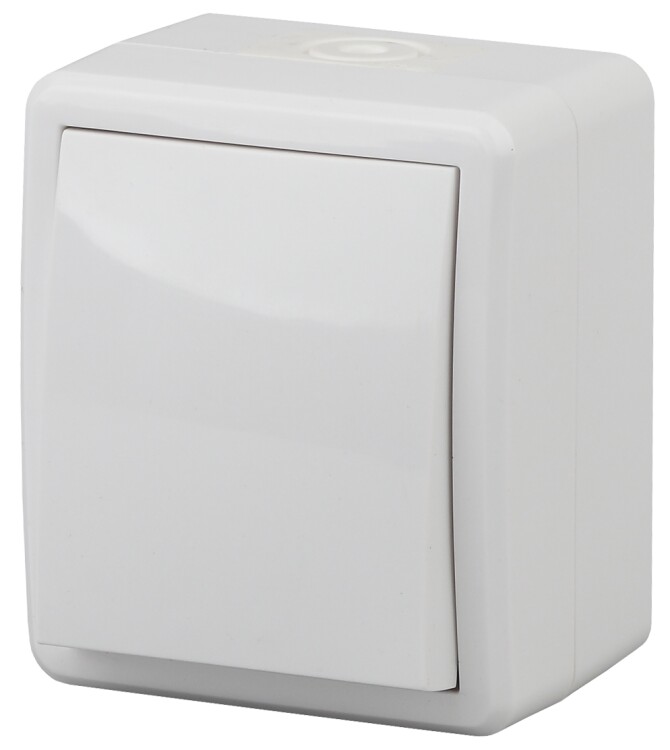 Выкл 1-клавиш. мех-м с накладкой 10А 250В о/у белый глянц. декор d 1/1 IP54 ЭРА Эра Эксперт