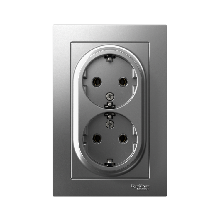 Розетка 2х2P+E в сборе 16А сталь AtlasDesign