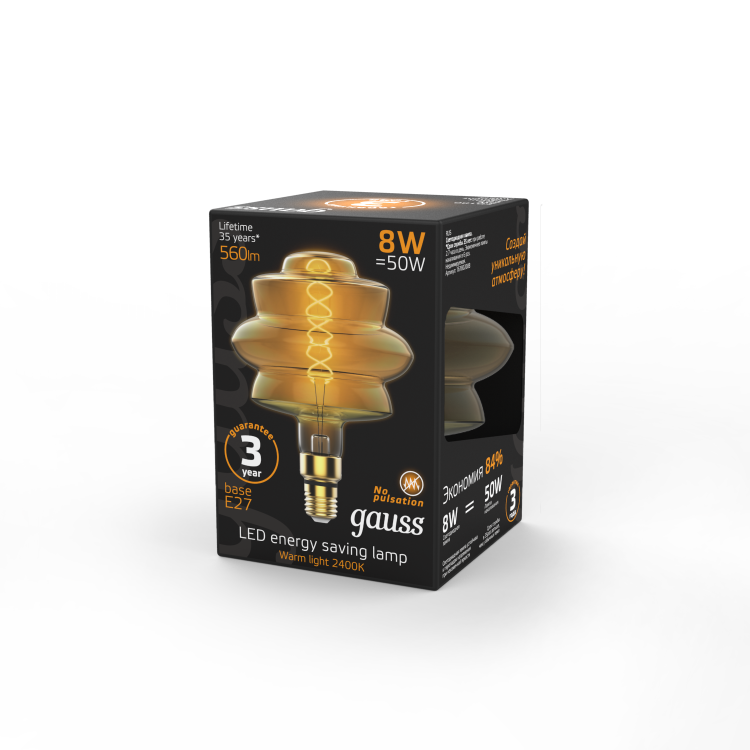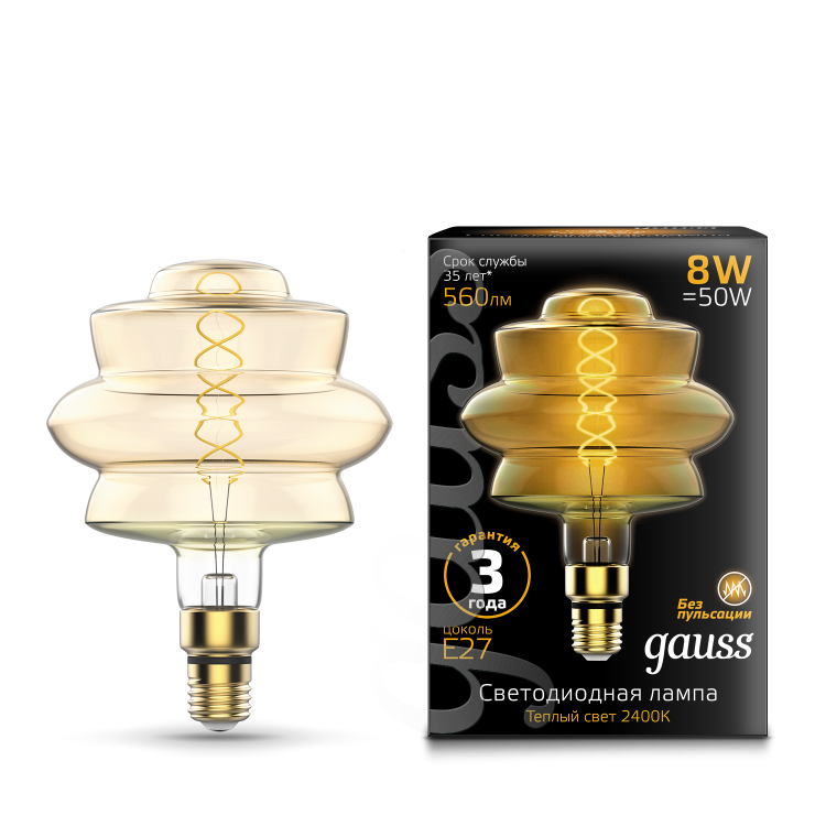 Лампа светодиодная 8 Вт 230В Е27 Led Vintage Filament Flexible BD180 2400K