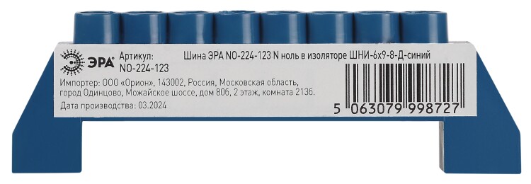 Шина ЭРА NO-224-123 N ноль в изоляторе ШНИ-6х9-8-Д-синий