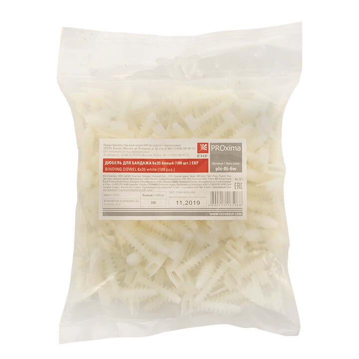 Дюбель спиральный 35ммx6мм пластик белый для крепления кабельными стяжками EKF