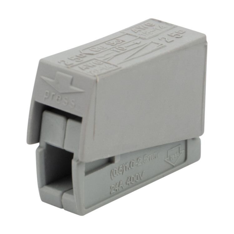 Строительно-монтажная клемма СМК 224-101 для светильника на 1 проводник (0,2-2,5)/(0,14-2,5) мм², серая (100 шт./уп.) REXANT