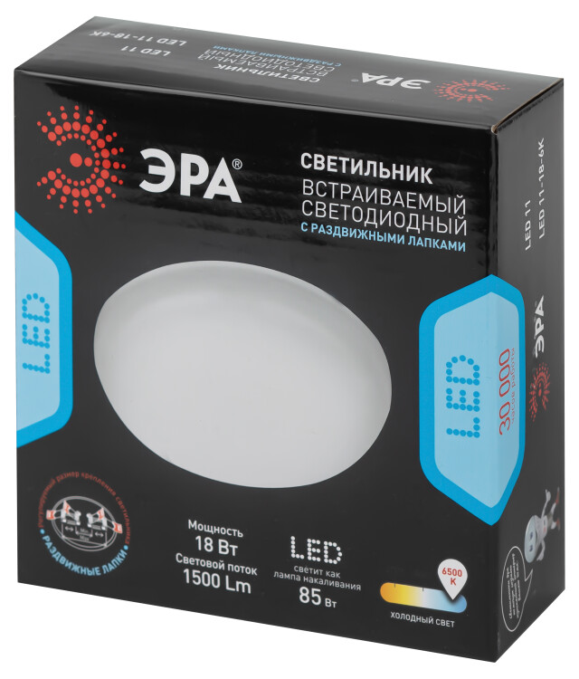 Светильник светодиодный встраиваемый ЭРА LED 11-18-6K круглый регулируемый 18Вт 6500K