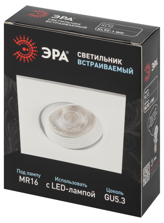 Встраиваемый светильник декоративный ЭРА KL92-1 WH MR16/GU5.3 белый, пластиковый