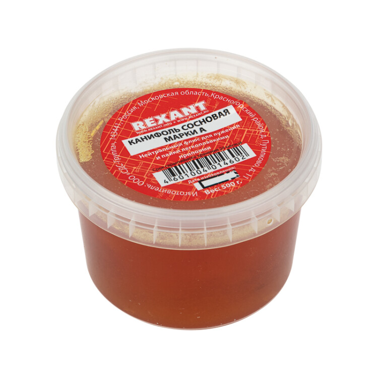Канифоль сосновая, флюс НЕЙТРАЛЬНЫЙ, марка А, 500г, банка REXANT