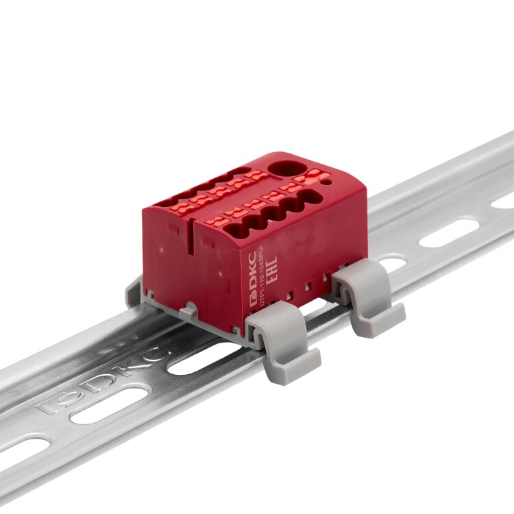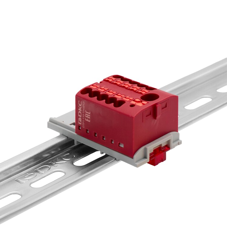 Блок распределительный, зажим push-in, 1 ввод 6 кв.мм, 10 точек подключения 2,5 кв.мм, красный