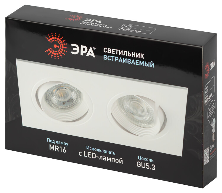 Встраиваемый светильник декоративный ЭРА KL92-2 WH MR16/GU5.3 белый, пластиковый