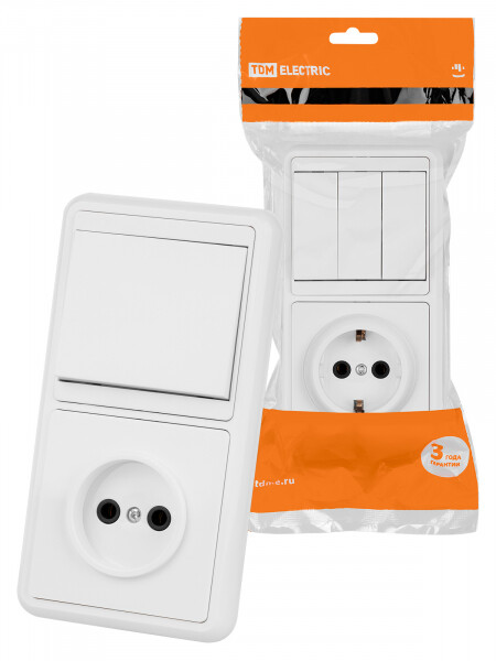Блок комбинированный БКВР 3-х кл. выкл + розетка с/з TDM