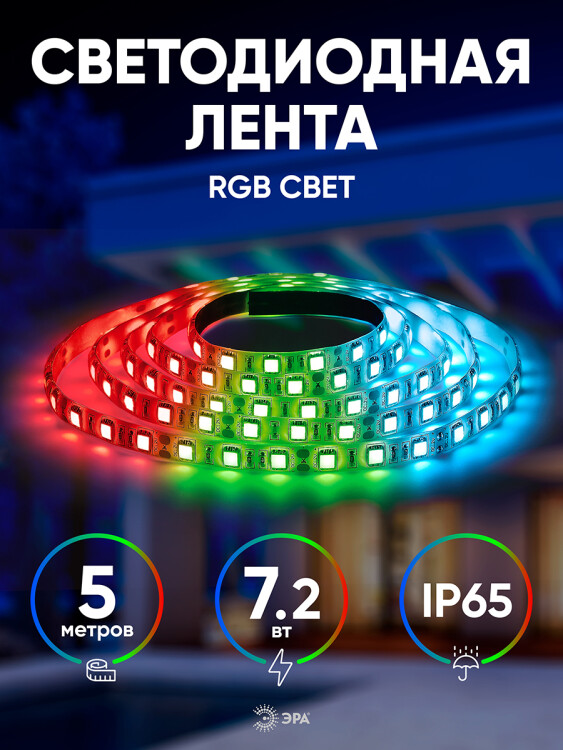 Светодиодная лента ЭРА LS5050 -30LED-IP65-RGB-5m (50/1500)