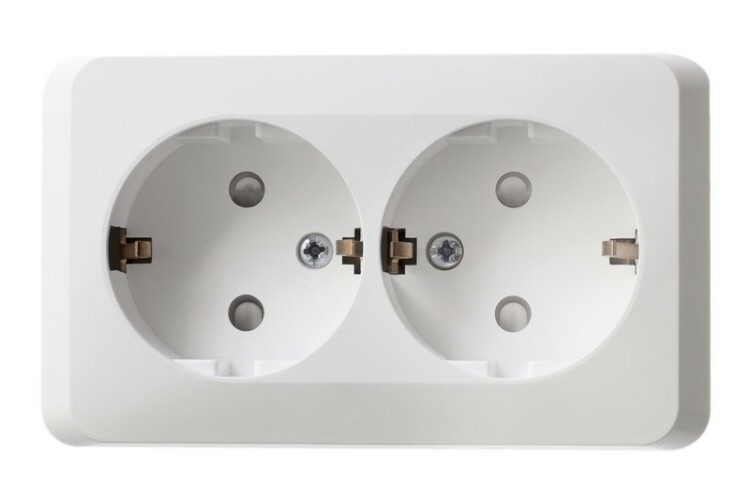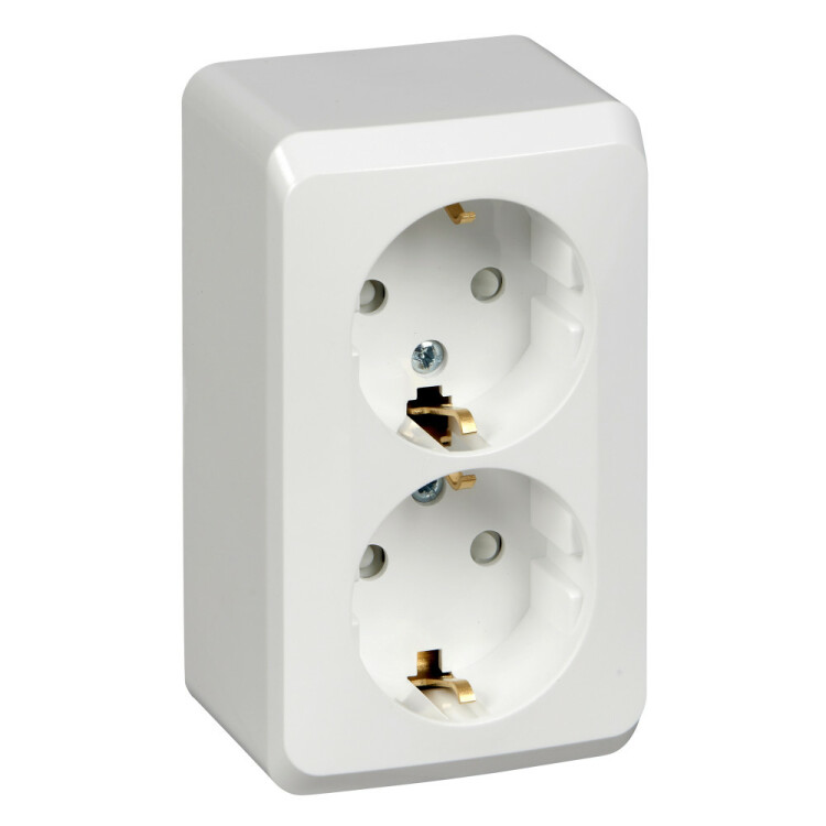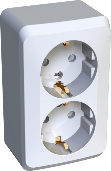 ЭТЮД О/У двойная РОЗЕТКА с заземлением со шторками 16А 250B, БЕЛЫЙ, Россия
