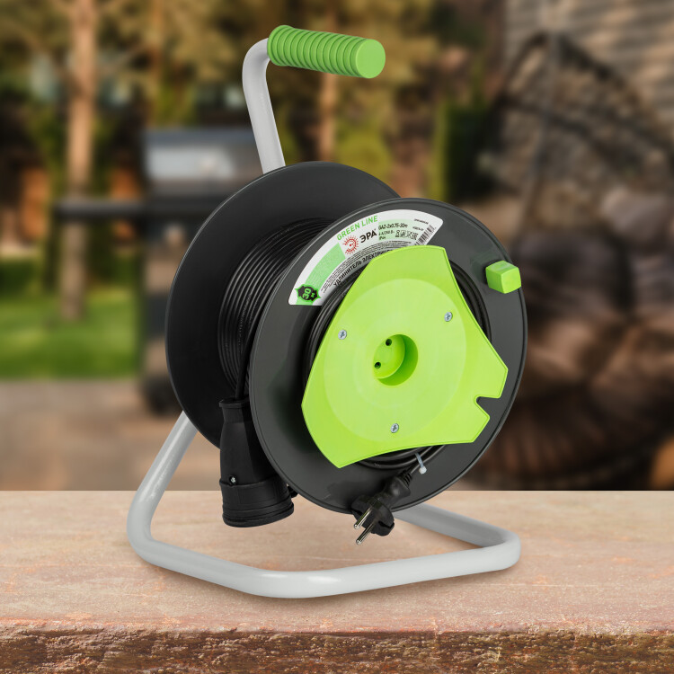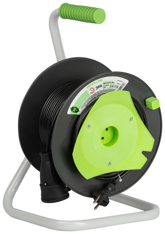 Удлинитель силовой ЭРА GREEN LINE GAZ-2x0.75-30m Greenline на катушке пластик 1 розетка без заземления 30м ПВС 2x0.75мм2