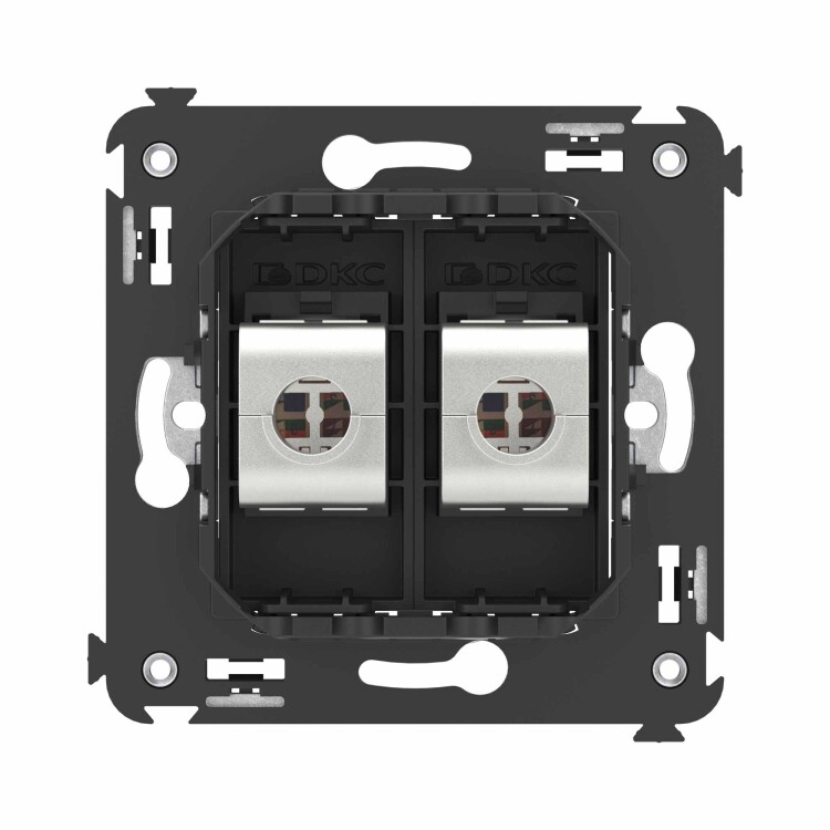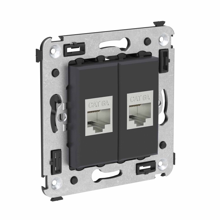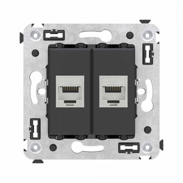 Компьютерная розетка RJ-45 без шторки в стену, кат.6А двойная экранированная, "Avanti", "Черный матовый"